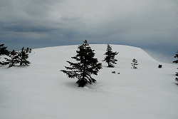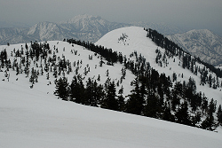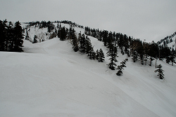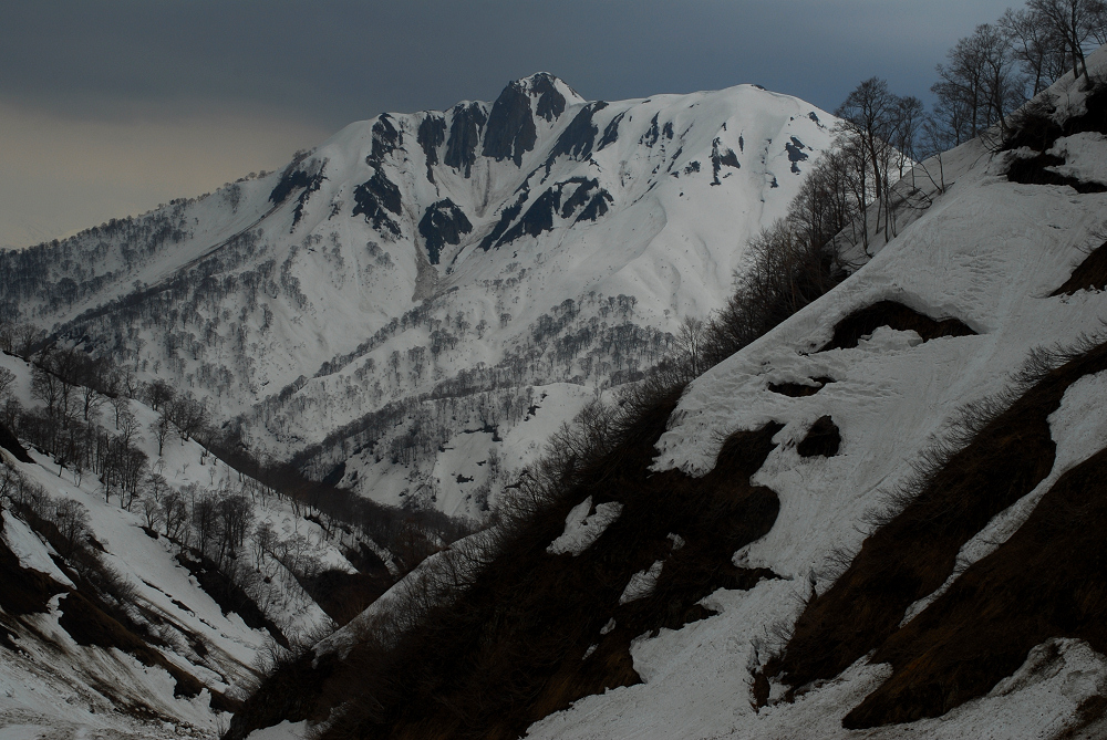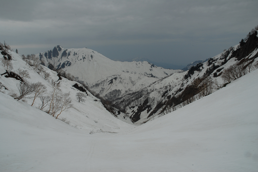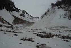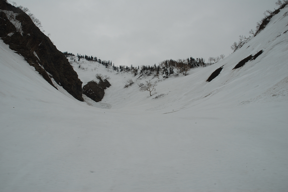 捕まる前に急いで下山を開始。晴れてれば最高に楽しいと思うけど、逃げるように大倉沢を滑る。