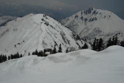 大倉沢に入り、適当な場所からシゲクラ尾根に這い上がるつもりが、良さそうな場所が無くてギリギリまで詰める。尾根に上がると天狗原山が見える。どうやら金山も近いようだ。