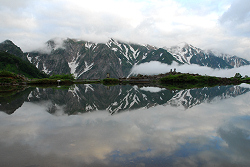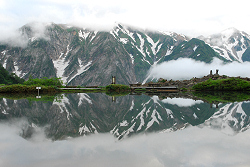 無風なので水面に映る山々が綺麗です。