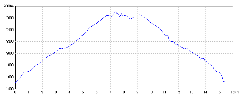 4:08 )-( 八方池山荘 4:48)-(八方池 5:22)-(唐松山荘 7:12)-(唐松岳 7:36)-(八方池 10:57)-(黒菱駐車場 11:53)