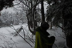 雪が深々と降り続き、静かな森の中で休憩する。風が無いのでそれほど寒さを感じさせない。