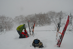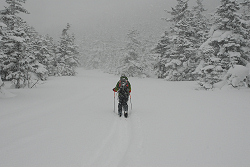 途中でシールが剥がれてしまい、応急処置して位ヶ原の道路にやってきた。この先はホワイトアウト状態だったので、ここで引き返す。