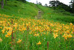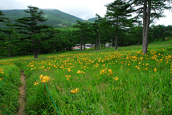 車坂峠にやってくるとゲレンデにはニッコウキスギが咲き乱れている。