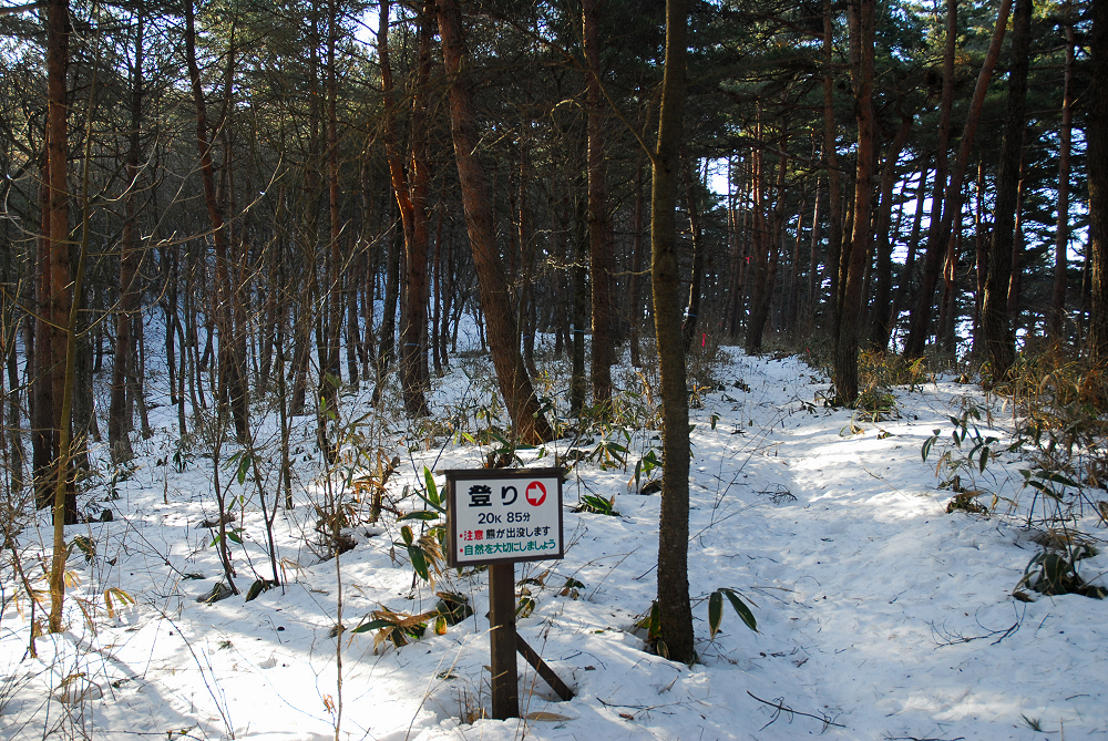 水を持ってなっかたけど、標識の時間から考えて往復できそうだったので歩き出す。山頂手前で雪が現れて踏みぬき多発。
