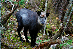 本日は「みどり池」までと決めていたので、時間を気にせずのんびり作業道を歩いてるとカモシカと出会う。落ち着いたようで、こちらの出方を伺っているようだ。