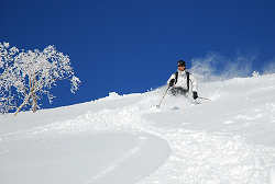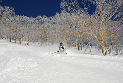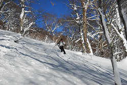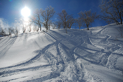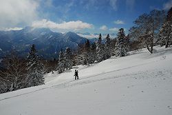 いつもと同じよう場所を滑りだすが、さっきまで雲に覆われていたのでとっても滑りやすい。標高が下がるにつれて重くなるけど、それでも楽しく滑ってゲレンデに到着。