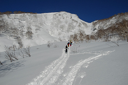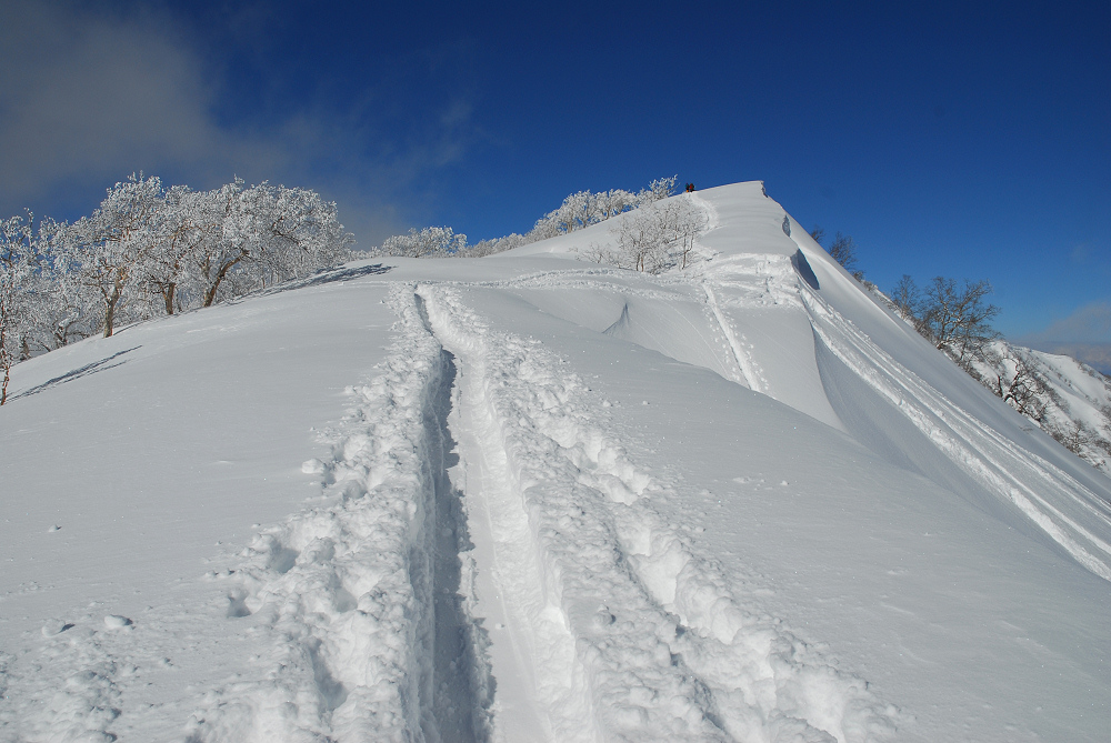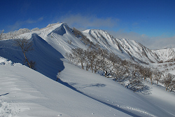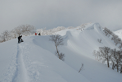 リフトを乗り継ぎゲレンデトップへ。急いで準備をして先頭集団に追いつこうとするが、出発か遅かったせいか僅かに時間が足りずに稜線へ到着する。