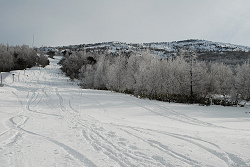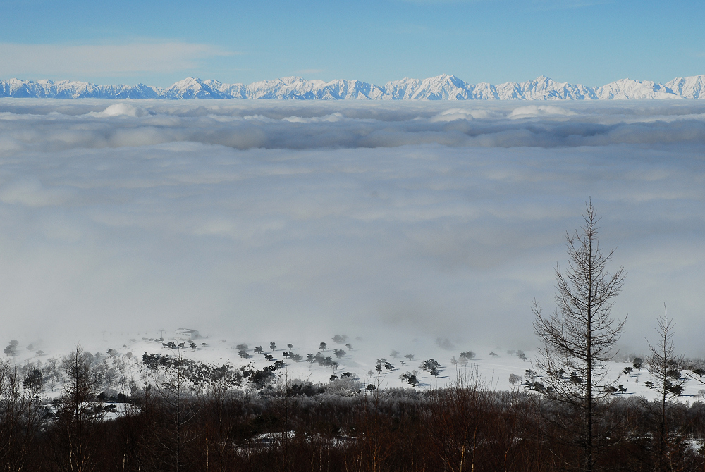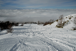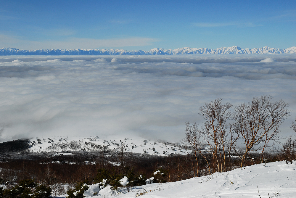 先週の大雪から1週間ほど過ぎたけど、ずーっと好天だったので奥ダボスキー場の斜面にはブッシュも見える。