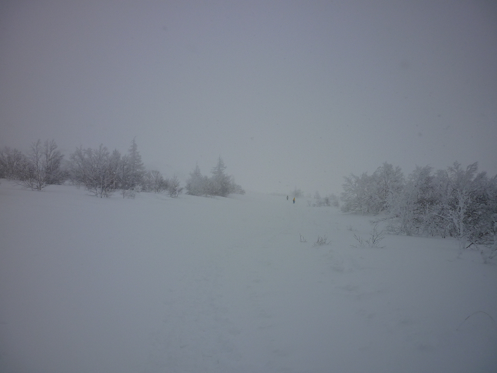 スキーでラッセルしてた人は途中でリタイヤしたのか、遠くに見える人影が先頭のようである。
