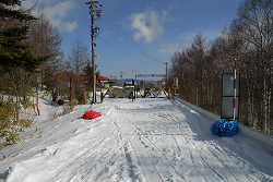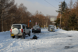 ヘロヘロになった頃に、麦草ヒュッテの前に広がる平原に到着した。ここでシールを外して一気に道路を滑り降りる。2度ほど上り坂の為にスキーを外して僅かな距離を歩くけど、ゲートまで止まることなく滑ってこれた。