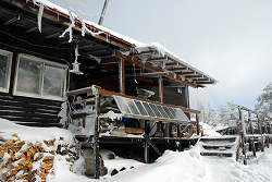 予定より早めに高見石小屋に到着したが、スキーで来たので場違いな思いをし、そそくさと丸山へ移動。シールを外すか迷ったけど雪が少なくトラップも多い。案の定、フカフカの雪の中には倒木が隠れており、ターン出来そうな場所でも慎重にキックターンをする羽目になった。