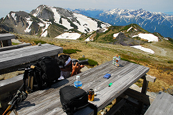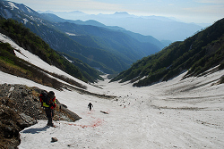 (猿倉 4:35 )-( 避難小屋 7:51)-(頂上宿舎 8:57)-(白馬山荘 9:46)-(白馬岳 11:09) (頂上宿舎 11:48)-(避難小屋 12:05)-(猿倉 13:26)