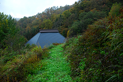 畑の脇を通り過ぎ、集落が見えてくると演歌が聞こえきた。誰かが近くに居るようである。