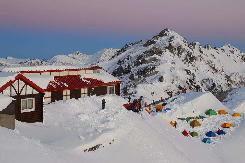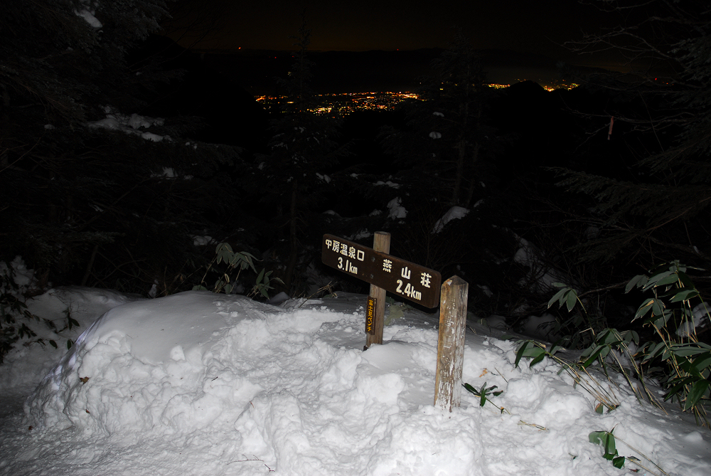 中房温泉の気温は-4℃。風が無いので、それほど寒さを感じない。