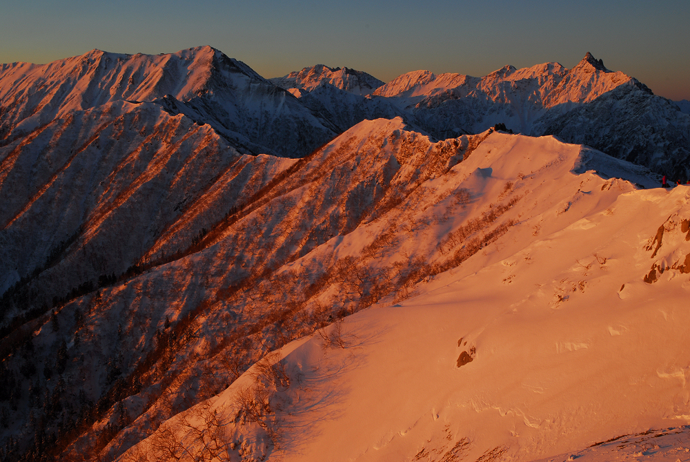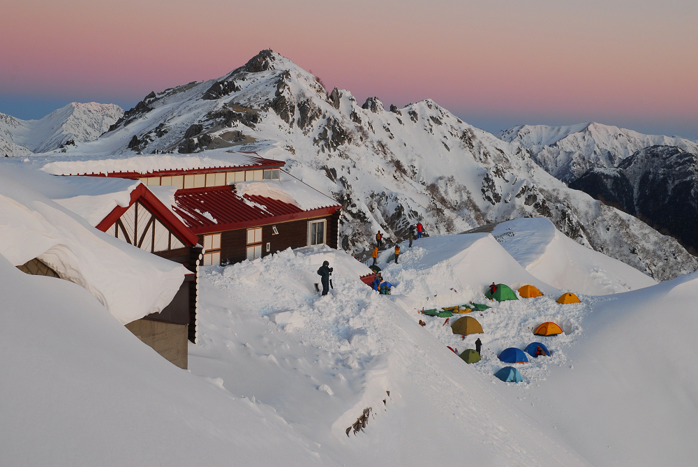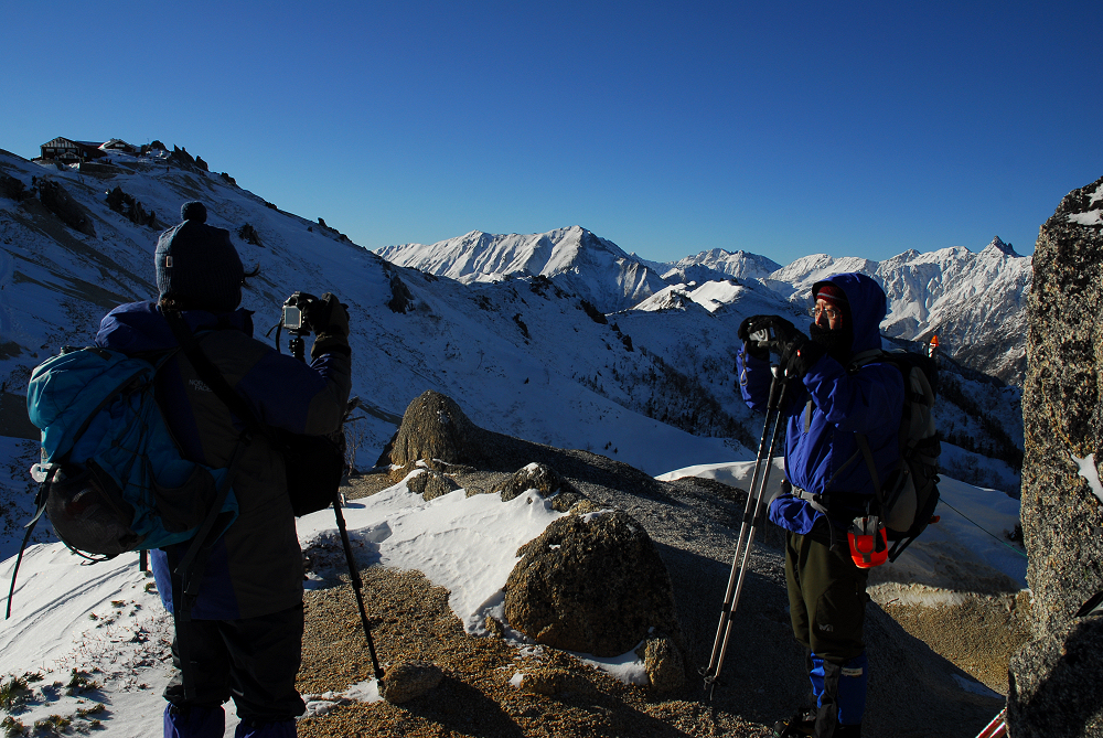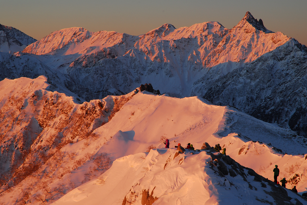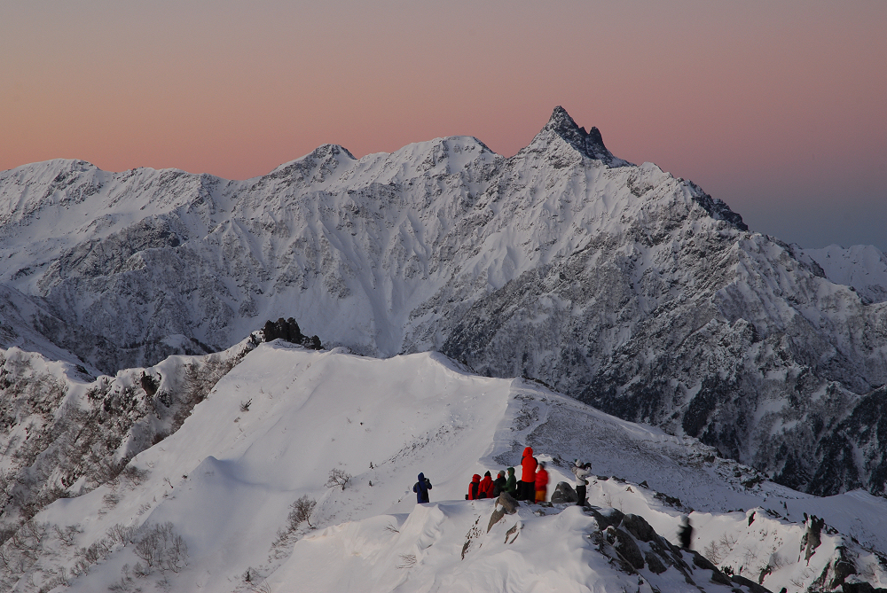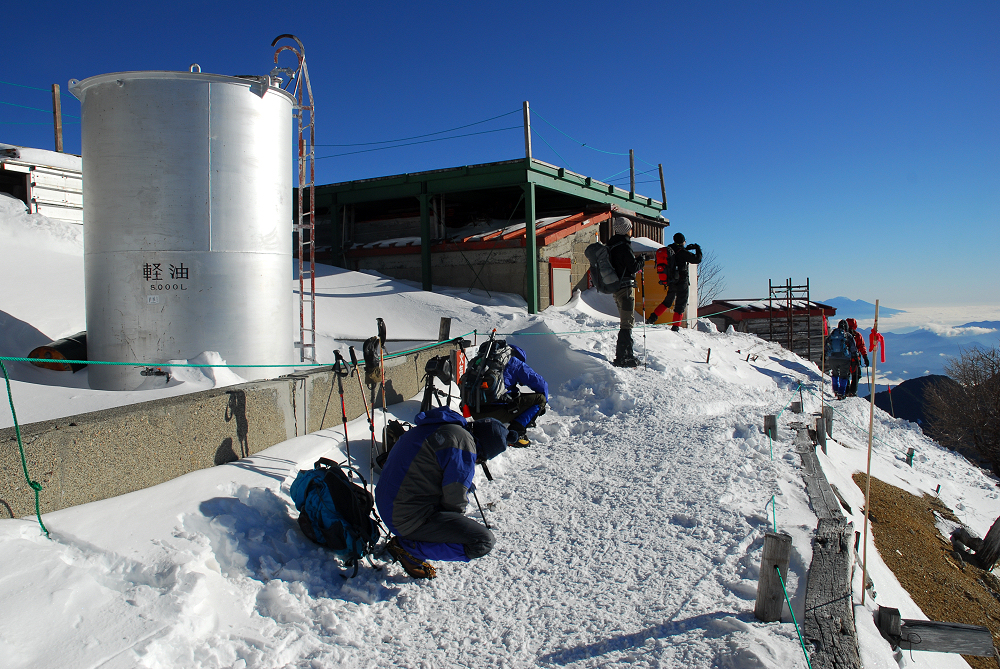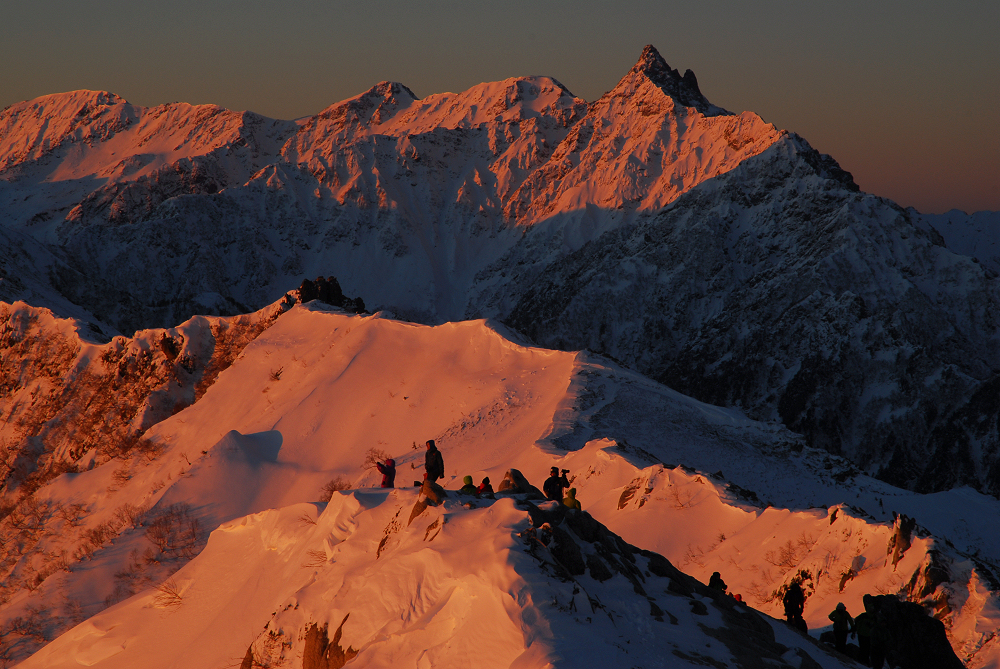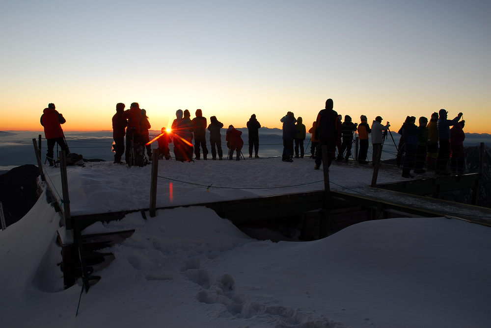 明るくなる前に燕山荘に到着したが燕山荘には大勢の人達が泊まっており、日の出の時間に合わせて続々と外に出てきた。 遅れて登ってきた13Bさんは人混みに紛れて行方不明となる。