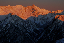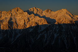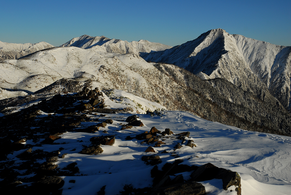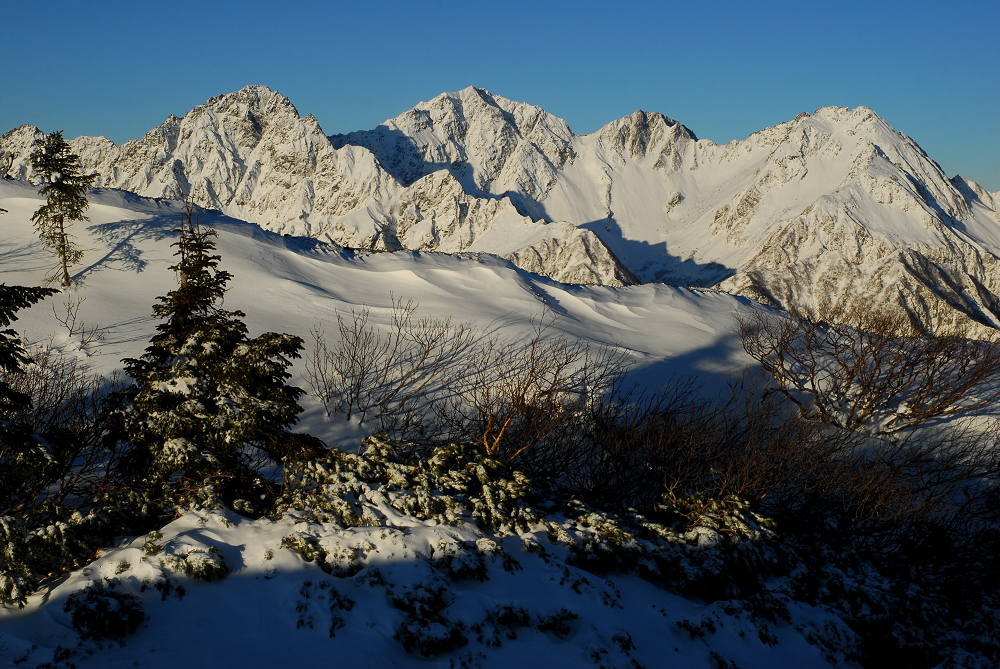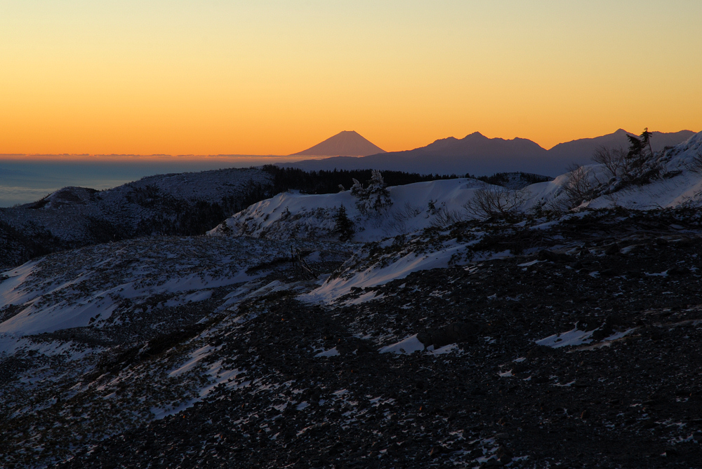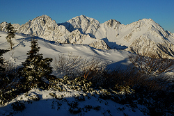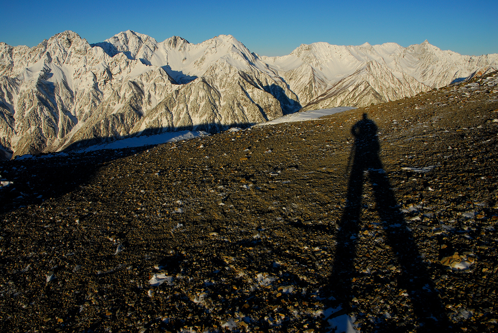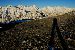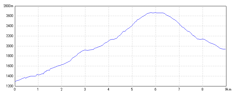 三股(1:03) まめうち平(3:10) 旧ベンチ(5:11) 蝶ヶ岳(6:35-8:50) まめうち平(10:58) 三股(11:55)