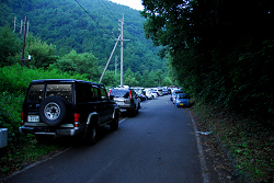運良く道路脇に車を停めることができました。ここから歩き始めます。