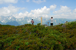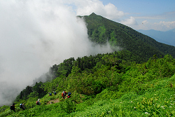 大勢の人達が夏山を楽しんでいます。