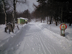 時間に余裕があったので旧鹿沢ゲレンデに滑り込んで登り返すこともことも考えたけど、途中でシールを張り付けるのが面倒だったので来た道を戻る。