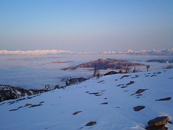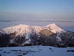 標高1500m付近に雲があるようで、菅平の大松山がひょっこり顔を出している。