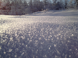 下界で湿った雪が降ったので、その影響で霜が成長したようだ。