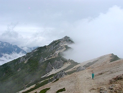 ヒュッテ西岳(6:00)〜水俣乗越(6:58)〜ヒュッテ大槍(8:33)〜槍岳山荘(9:49)〜槍ガ岳(10:34)〜槍沢テント場(14:00)
