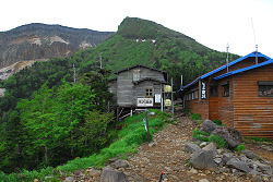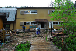 ダラダラ歩きながら夏沢鉱泉を通り過ぎて、やっとこオーレン小屋に到着すると、学校登山の集団がテント場に集合している。これから硫黄岳にでも登るのだろうか?ちょっと不安になってきた。
