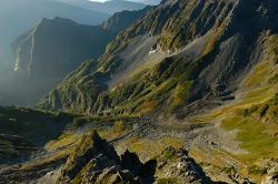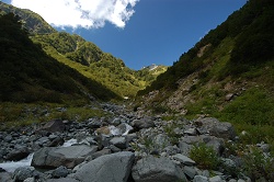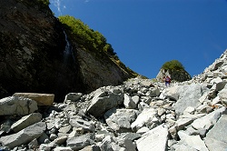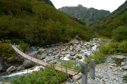 南岳小屋(7:30)〜大キレット(7:50)〜天狗の踊り場(8:30)〜北穂池の滝(9:16)〜二俣(10:10)〜本谷橋(11:06)〜横尾(12:06)〜徳沢(13:21)〜上高地(15:07)