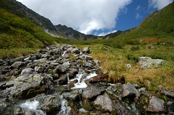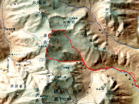 上高地(6:11)〜明神(7:09)〜徳沢(8:02)〜横尾(9:17)〜本谷橋(10:34)〜涸沢出合(11:15)〜二俣(11:50)〜黄金平(12:44)〜横尾尾根(14:28)〜南岳(16:09)〜南岳小屋(16:17)