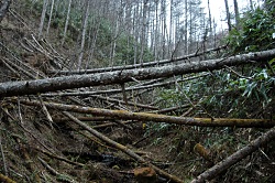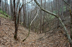 途中で炭焼きが行われた石垣を発見。ついでに熊の足跡もあったけど、新しいわりに近くにいないようだ。大声で叫んでから炭焼きが行われた場所を観察する。