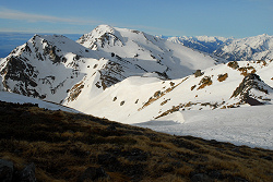 今日は風が強いので白馬乗鞍岳に登るのは中止にして、自然園を横断して金山沢の入口へ移動するも、ちょうどゴンドラの運航時間と重なった為か、大勢の人達が小蓮華岳を目指していて、2300mの台地でのんびりコーヒーを飲みながら滑る様子を観察する。