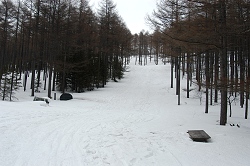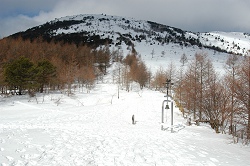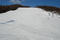 湯の丸スキー場に到着したけど、まだ時間が早いので滑っている人も少ない。以前、湯の丸山へ登った時に購入した回数券が残っているので、ウォーミングアップ程度に滑ってから湯の丸スキー場を出発する。