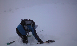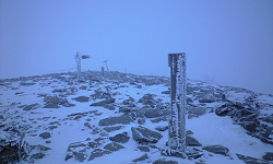 風と雪に泣かされながら何とか時間どおりに頂上に到着。めっちゃ寒いので視界が晴れた時を狙って急いで下山する。
