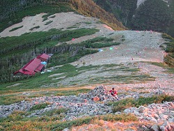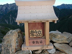 第2日目 常念小屋(6:00)〜常念岳(7:05-7:55)〜常念小屋(8:45-9:45)〜一の沢登山口(13:45)
