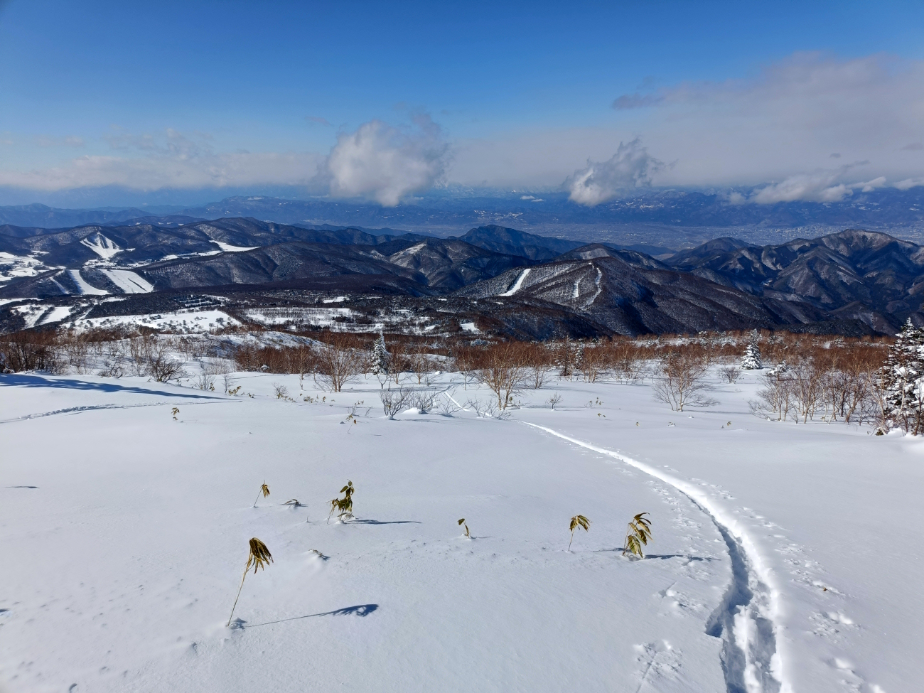 ベースが出来上がったとネットに書かれていたのでゴルフ場から根子岳に登りました。少し遅めの出発でしたが、滑る場所も残ってて、さらっと滑って帰宅。今シーズンは雪が少なくて滑れる期間も短そう。
